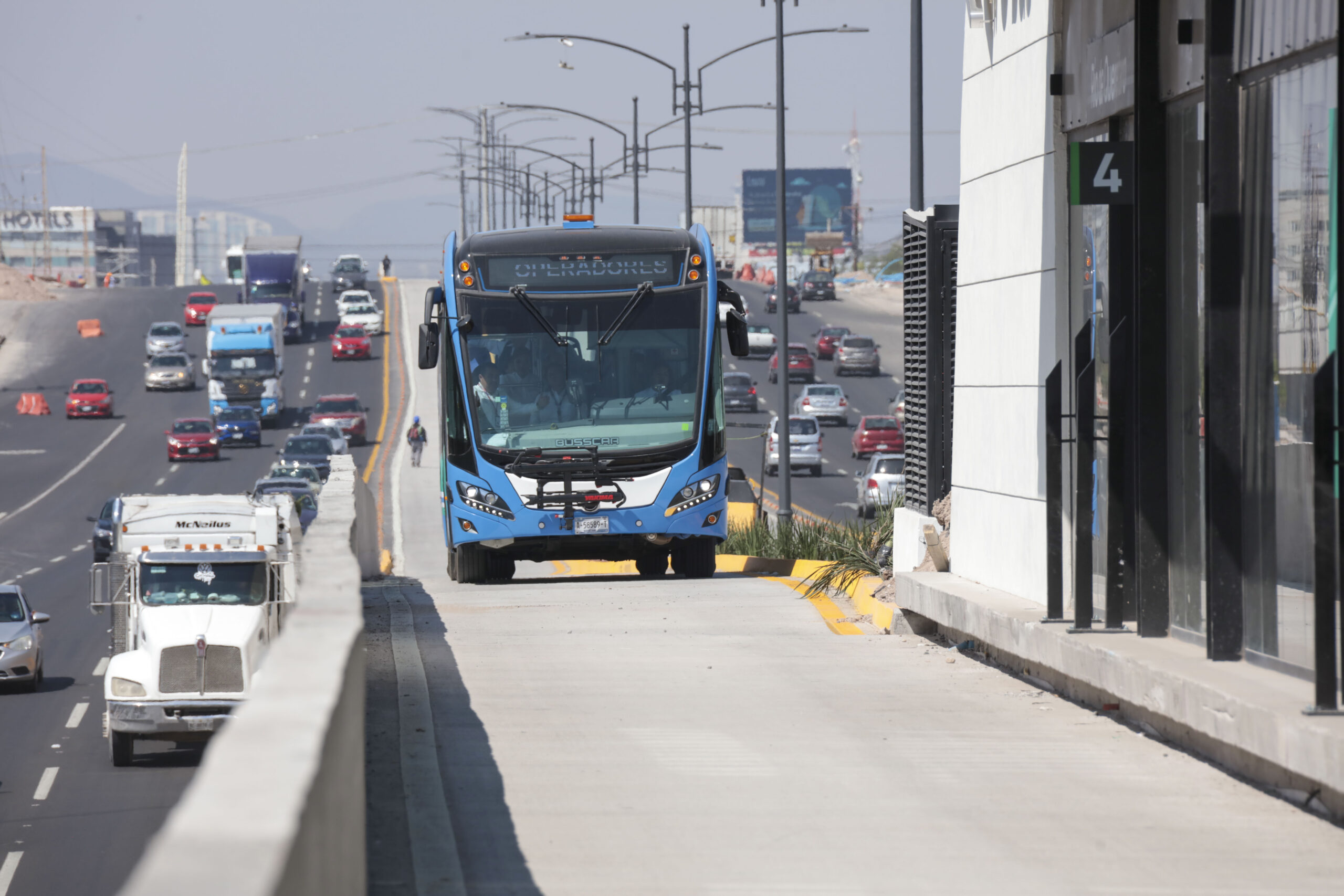 Algunas rutas del QroBús se adaptaron al carril confinado para ubicar accesos a las estaciones e identificar los puntos de cruce seguros.