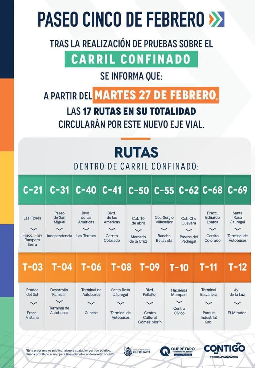 Usuarios del transporte público tenemos buenas noticias, la ruta podría ya pasar por tu lugar de destino, ya que se abrirá el carril confinado de Paseo 5 de Febrero este 27 de febrero.